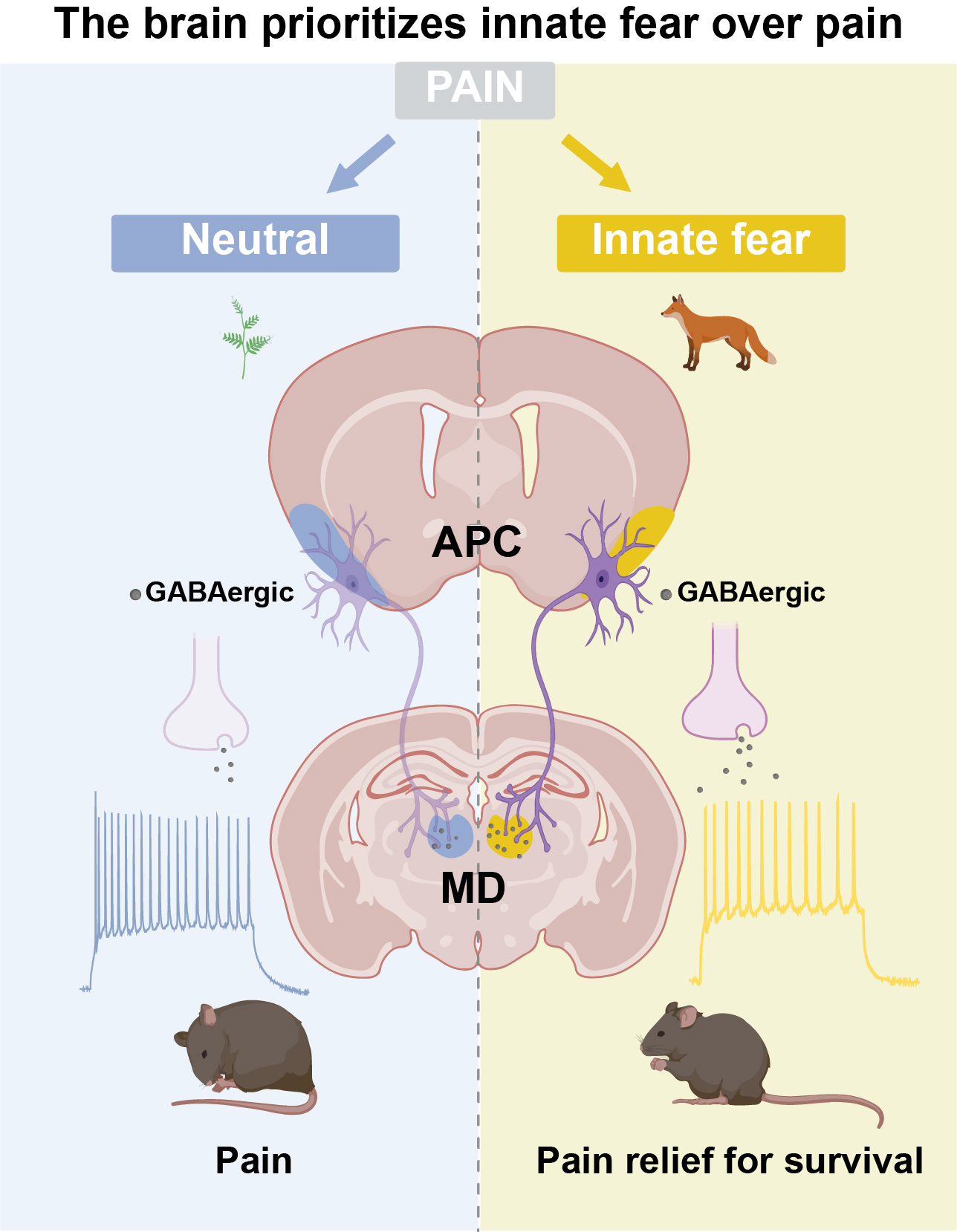 Wen-Bin Jia, Xin-Yue Wang, Xin-Xin Xia, Liu Tang, Yu-Xuan Liang, Xiao-Lin Lei, Xiao-Qing Liu, Wei Hu & Yan Zhang. A corticothalamic circuit modulates pain sensitivity and mediates innate fear-induced analgesia in male mice